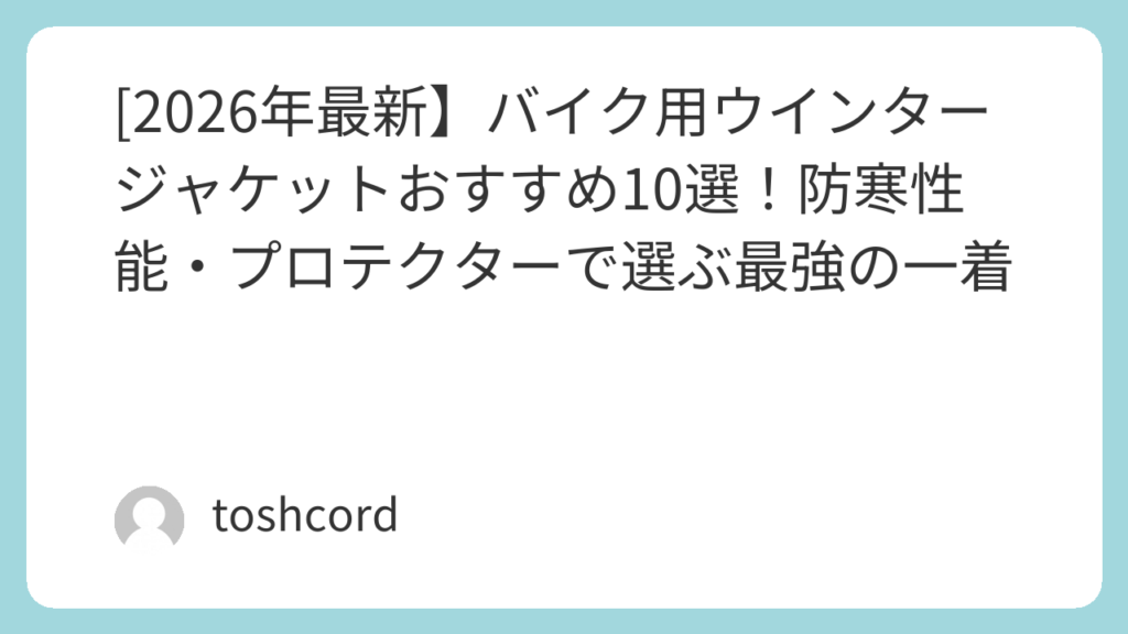 🧥 バイク用防寒ジャケット オススメ5選! 防寒性能・プロテクター・デザインで選ぶ最強の一着 「冬のバイクは寒すぎて走れない…」そう思っていませんか? 実は、適切なウインタージャケットを選べば、真冬のツーリングも快適に楽しめます。バイク... -