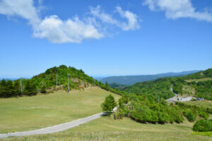 県最高峰・茶臼山(標高1,415m)の山頂付近まで続く約14kmのワインディングが楽しめるルート。以前は有料でしたが今は無料で走れるので、気軽に何度でもリピートできます。250ccでも十分楽しめるコーナーの連続です。