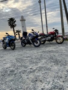 海沿いのルートは気持ちいいし、灯台の前でバイクを並べて撮る写真は映えるし、夕焼けは感動もの。